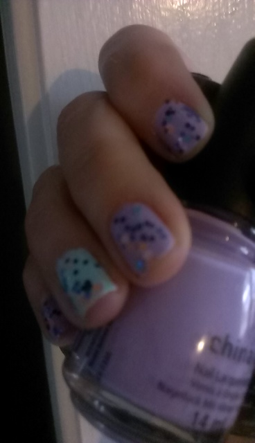 Previous ImageNext Image 52 China Glaze in Lotus Begin (purple), At Vase Value (blue) and Glitter Up Top coat